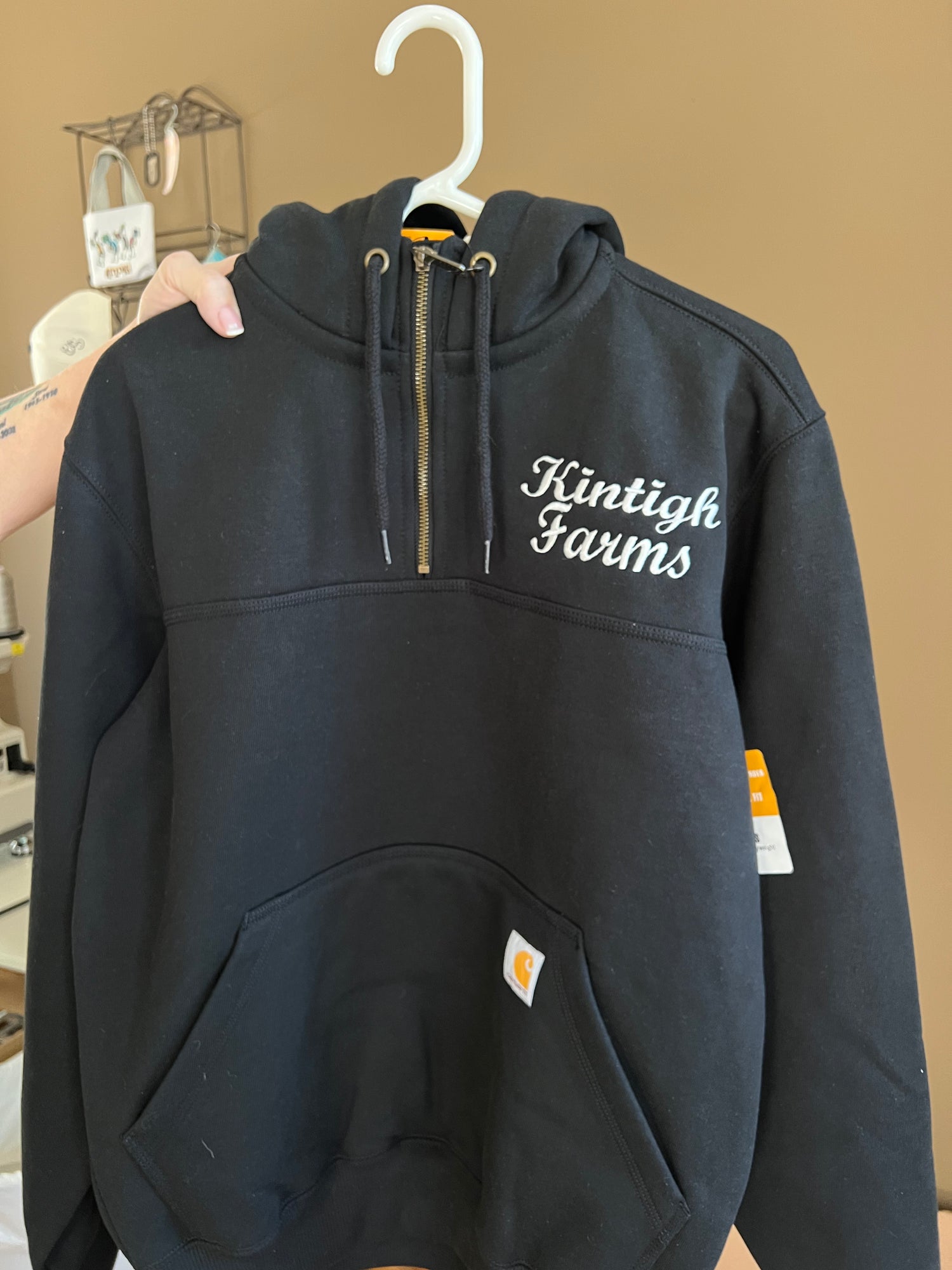 We customized 6 Carhartt Rain Defender Quarter Zips for Christmas gifts! If you know a small business, family farm, or other group looking for a personalized gift for their team, send them our way!